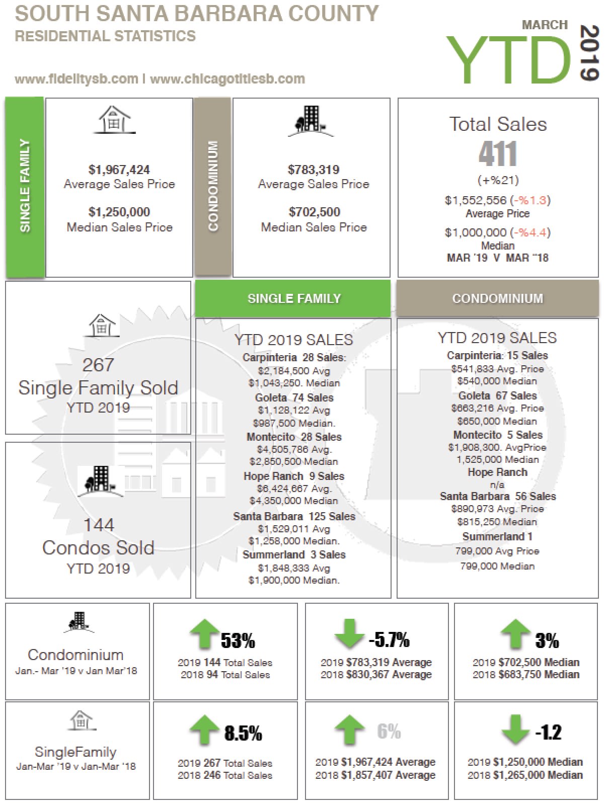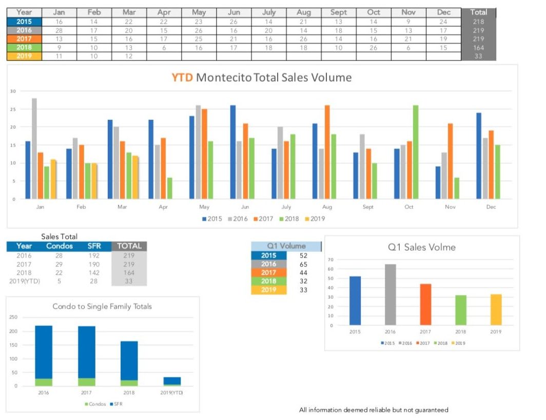 A year later, we are so happy to see Montecito rebuilding and getting back on it’s feet following the winter storm events of 2018. Overall, Montecito’s stats are relatively the same as last year with a minor increase in sales and average price, and a slight decrease in the median pricing. Understandably, the Montecito market is still volatile but not without a great deal of renewed optimism as the rebuilding process continues. If you have any questions, give me a call.